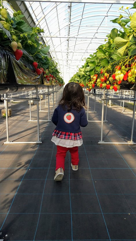 私の手を振りほどいて、美味しい苺を求めてまっしぐら!